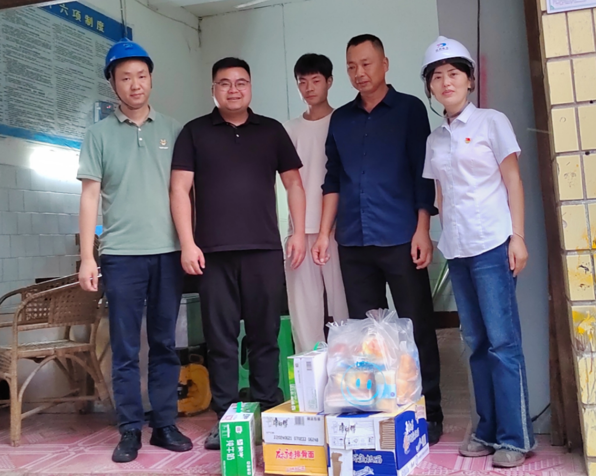 7月11日,受集团党委书记、董事长柏相臣,党委副书记、董事、总经理李世明委托,集团党委委员、纪委书记李小计,党委委员、职工董事、工会主席董剑梅分别带队前往集团9个电力保供生产单位,向奋战在抗洪抢险一线的干部职工进行慰问,了解受灾、电力保供电以及汛期24小时值班情况,感谢他们勇于担当、忠于职守、奋力抢险,并为他们送去方便面、牛奶、面包等物资,确保抢险及清淤工作顺利开展,以实际行动诠释着“工”力量。