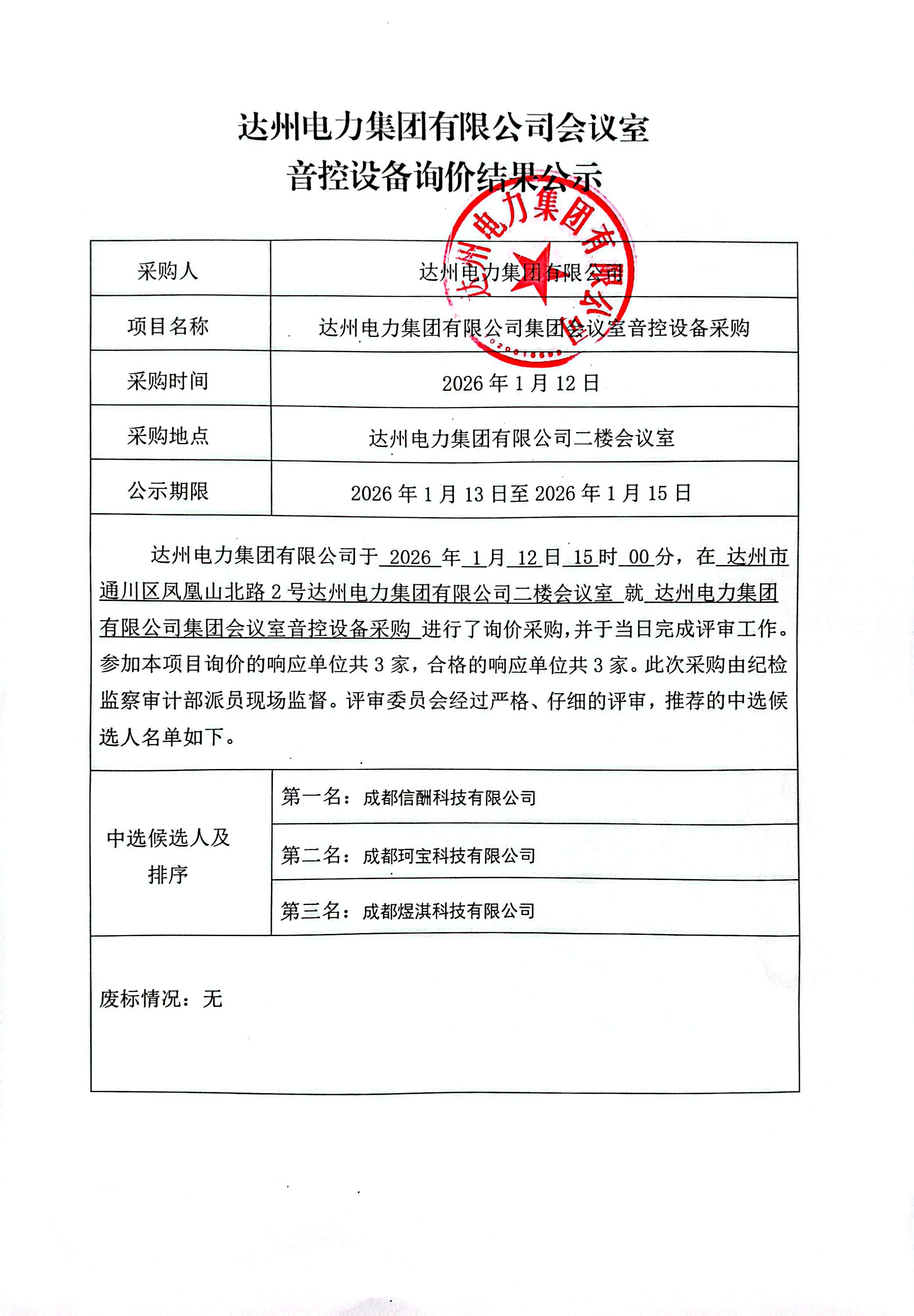 永利集团88304官网有限公司会议室音控设备询价结果公示